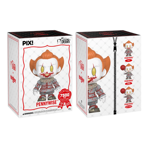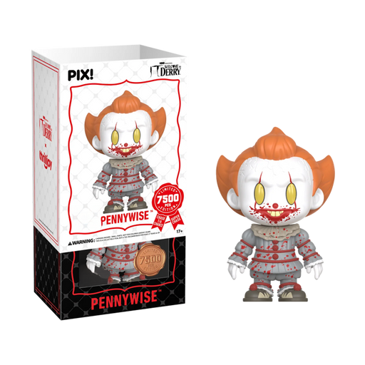 ¡Acéptalo! ¡Bienvenidos a Derry, Pennywise ya está aquí! Presenta a Pennywise con su icónico disfraz de payaso blanco y rojo, con grandes ojos amar...