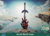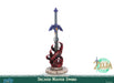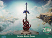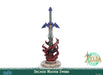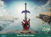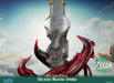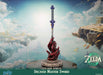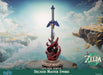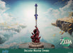 Esta estatua de tamaño real está inspirada en la impactante escena donde la Espada Maestra se rompe debido al Gloom liberado durante la resurrección de Ganondorf bajo el Castillo de Hyrule. La pieza muestra la espada erguida, mientras la energía oscura del Gloom se extiende desde la base de resina hacia arriba, envolviendo las secciones corroídas de la hoja.