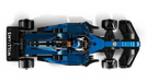 Esta maqueta del F1 cuenta con habitáculo (al que accedes levantando el halo), alerón trasero, suspensión de doble horquilla, pegatinas de los patrocinadores y neumáticos traseros más anchos con la inscripción “Pirelli”. El coche de F1 construible viene con una minifigura de un piloto con traje de competición de Williams Racing y casco con alas.