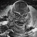 Sigue a un grupo de científicos hasta la turbia caverna submarina que alberga… ¡A la Criatura de la Laguna Negra! En las profundidades de la selva amazónica, acecha un humanoide anfibio que se cierne sobre esta impactante ilustración con ojos desorbitados y manos palmeadas. El Dr. David Reed y Kay Lawrence, con su icónico traje de baño blanco, se sumergen en las peligrosas profundidades de este paraíso repleto de flora. Sobre la superficie del agua flota su barco, el Rita, listo para capturar el descubrimiento de su vida.