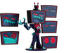 Vox expande su imperio mediático con una adquisición hostil con su debut en Youtooz. Con una altura de 13,2 cm y una mano con garras y puntas verde azuladas a un lado, mientras su mano izquierda se cierra en un puño tras la espalda, viste un traje azul intenso con líneas irregulares que recorren su abrigo angular a juego con la solapa y los detalles de sus zapatos.