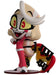Sostiene una mano sobre su pecho mientras extiende el otro brazo y suelta una canción deslumbrante. Mide 13 cm y mira con esperanza hacia un lado con sus brillantes ojos amarillos mientras su boca se eleva en una sonrisa puntiaguda sobre sus mejillas sonrosadas. Su flequillo rubio se mueve hacia adelante mientras el resto de su cabello está recogido en una cola de caballo gruesa en su espalda. Charlie usa una chaqueta roja sobre una camisa blanca de cuello alto con pantalones rojos a juego mientras ondas de canciones vibrantes de amarillo, naranja y rojo bailan detrás de ella con notas musicales negras. El exterior de su empaque te ubica justo en el vestíbulo del hotel, frente a una larga escalera marrón mientras patrones dorados ornamentados se alinean en las paredes y barandillas. El interior de la caja está cubierto con un elegante papel tapiz con patrones rojos que continúa en la funda protectora donde se vuelve de un negro profundo y muestra un paisaje urbano oscuro mientras su figura se puede ver a través de la gran ventana transparente en el frente del empaque.