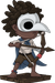 De pie, valiente, con sus 11,4 cm de altura y una flecha en su improvisado arco marrón, Low viste pantalones cortos marrones, camiseta blanca y una capa azul que ondea al viento. Lleva una tobillera azul y roja, una máscara de cuervo blanca que le cubre el rostro y gruesas trenzas de pelo negro le salen de la coronilla.